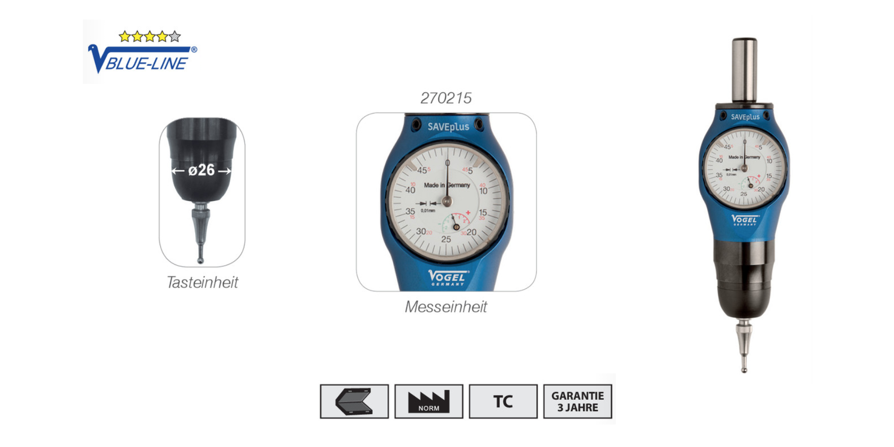 Центроискатель 3D 134 мм с керамич. щупом ø 3 мм Vogel