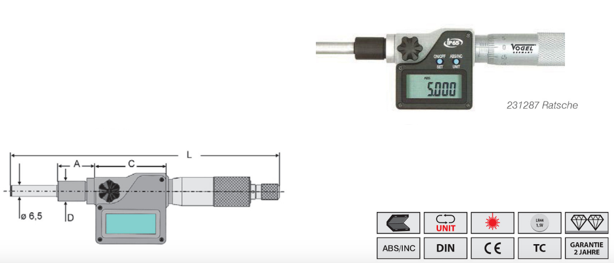 231287 0-25/0-1 мм/дюйм 0,001/0,00005 12 (+0/-0,011) 3 мкм 17,5 47,5 165,5