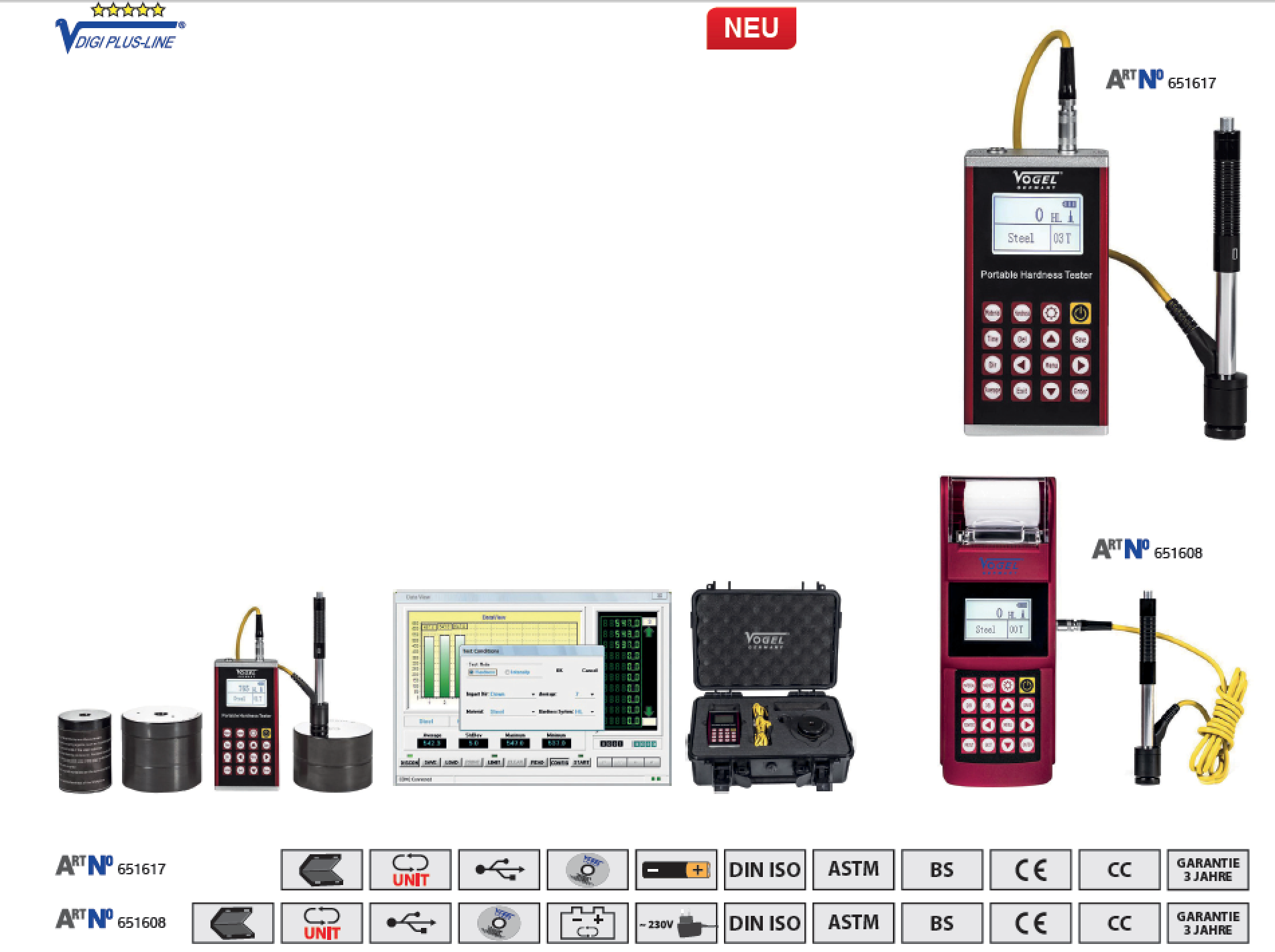 Универсально цифровой твердомер c внешним ударным устройством тип „D“ (стандарт) с выходом данных USB Профессиональный, переносной измерительный прибор для быстрого и независимо от положения прибора измерения твердости.