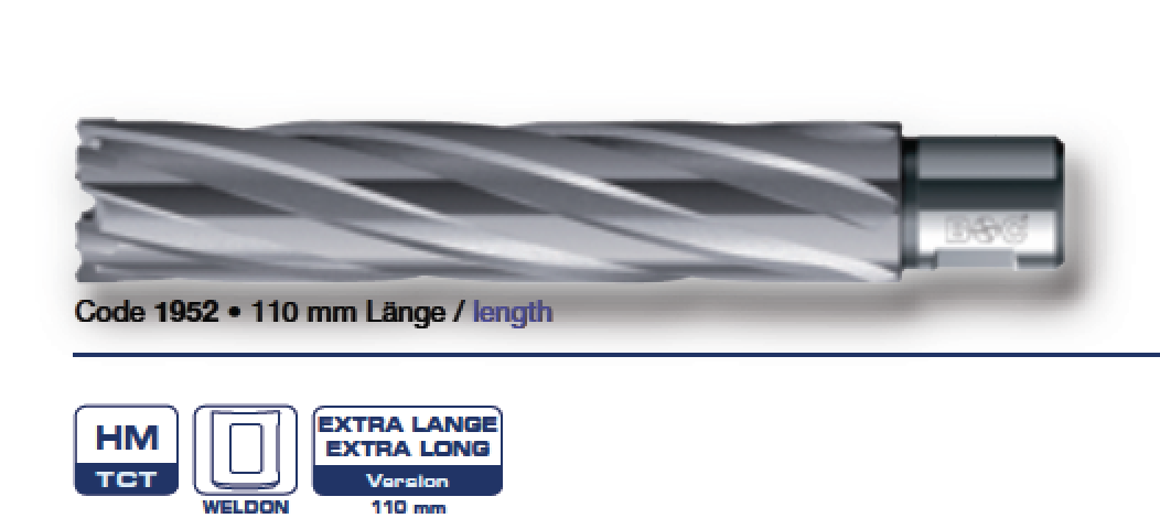 Сверла корончатые фирмы Bohrcraft твердосплавные рабочей длиной 110 мм для высверливания отверстий большого диаметра