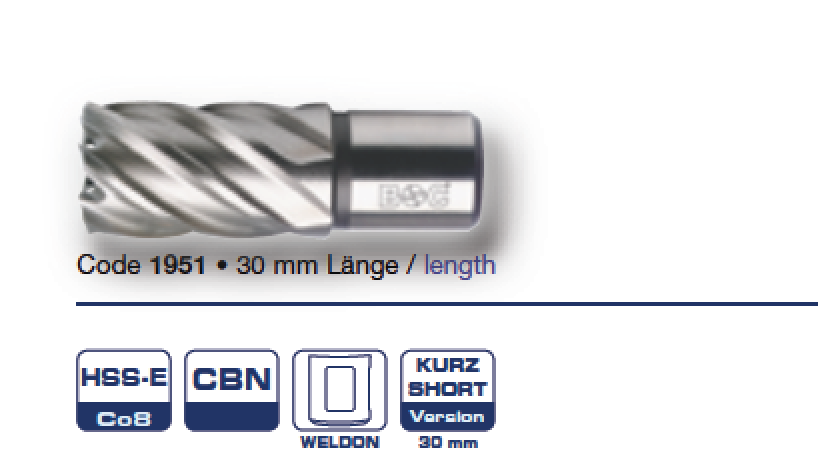 Сверла ∅ 12,0-60,0 HSSE корончатые L реж=30 1951 Bohrcraft
